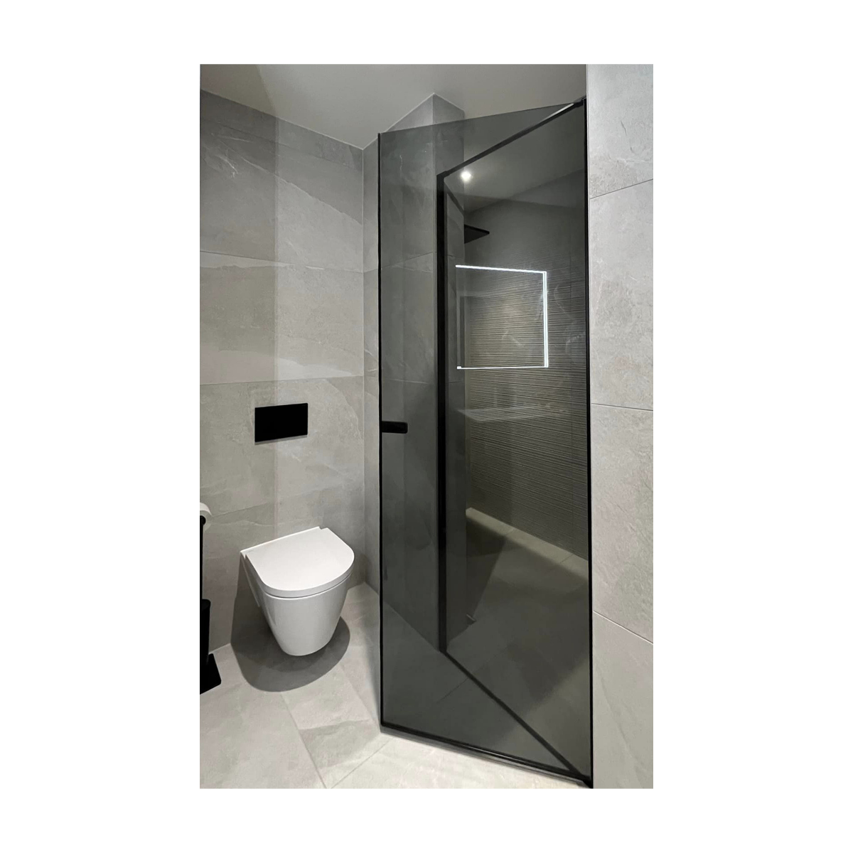 Il modello Link KN con profilo nero opaco e cristallo grigio interpreta il box doccia con un design minimale che lascia spazio solo all’eleganza.