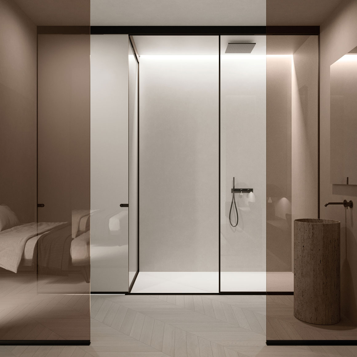 La scelta del box doccia incide sull’equilibrio tra estetica, funzionalità e solidità dell’ambiente bagno. Frame di Vismaravetro è una collezione di walk-in intelaiate senza porte, caratterizzate da un design essenziale e una struttura robusta....