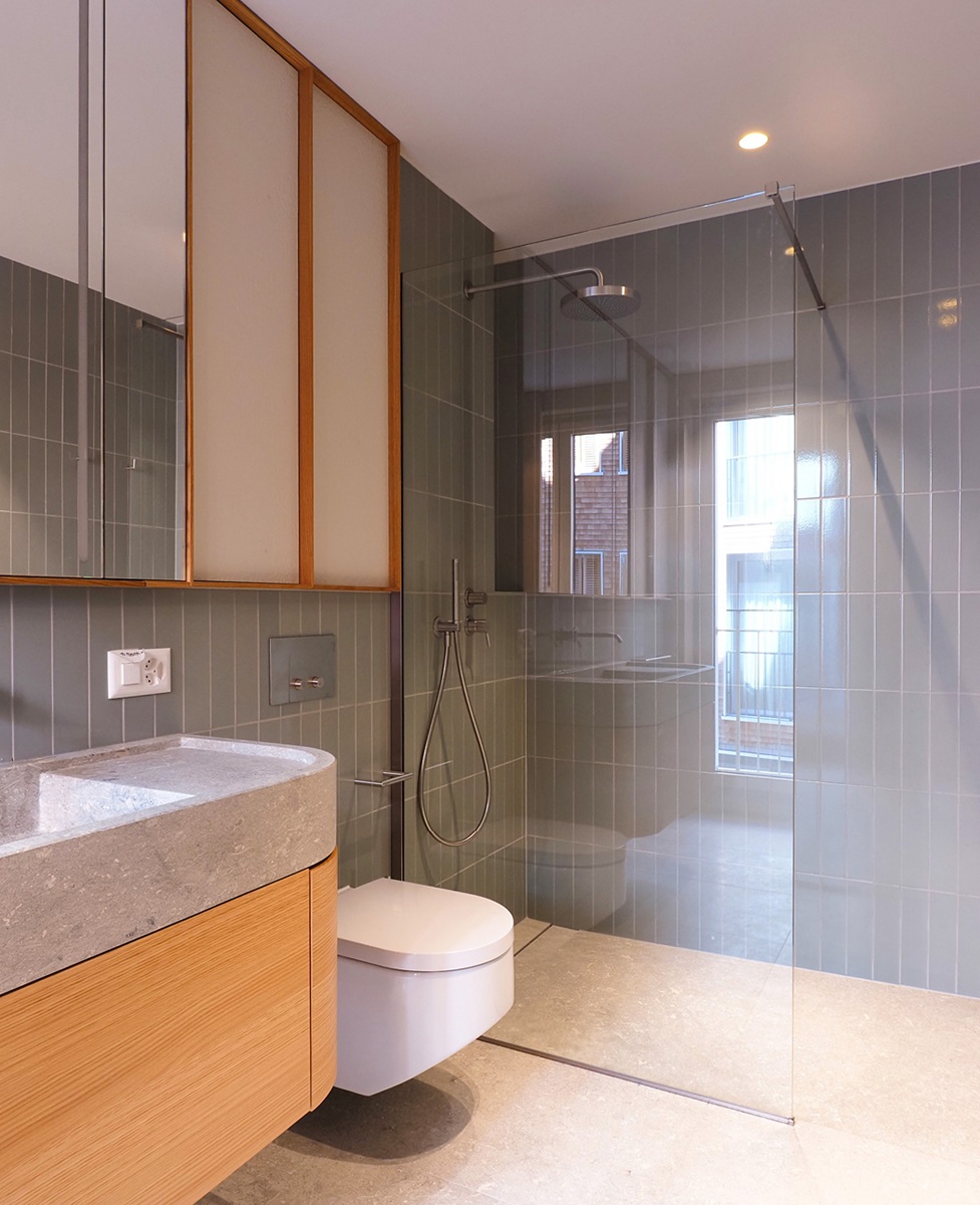 In Andermatt, a jewel in the Swiss Alps, a project with delicate tones and a measured balance of finishes is taking shape. In this context, Sk-In with transparent glass and a Brushed Steel finish profile and bracket fits in naturally, complementing the space without altering its harmony.